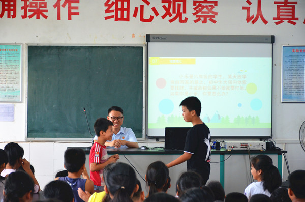 ????法制教育课以“你要保护好自己”为主题,课堂上,未审庭干警首先向同学们讲解校园欺凌和性侵害的表现形式与造成的危害,并结合相关案例从不同角度对犯罪的成因进行深入剖析。接着,干警将防范侵害的措施生动地归结为“防暴技巧七则”、“防狼秘籍十条”,逐条讲述,使同学们能够通过通俗易懂的方式吸收和领会。在互动环节,同学们踊跃参与,通过上台表演,把之前学习到的防范侵害技巧应用到“情景模拟”中,并得到干警的点评。
